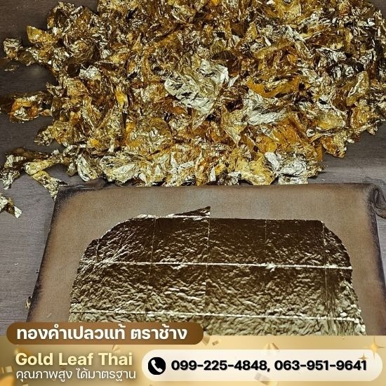 จำหน่ายผงทองคำเปลวแท้ราคาถูก เกล็ดทองคำเปลวแท้ 100% ตราช้าง ศูนย์รวมทองคำเปลวทุกรูปแบบ เพื่องานศิลป์ โรงหล่อพระ, วัดที่ต้องการซื้อทองตรงจากผู้ขาย, กลุ่มโรงงานผลิตเครื่องสำอาง ร้านสปา คลินิกเสริมความงาม ที่ใช้แผ่นทองร่วมกับผลิตภัณฑ์บำรุงผิวหน้า, กลุ่มร้านอาหาร คาเฟ่ และเบเกอรี่ต่างๆ  "คลิกที่นี่เพื่ออ่านรายละเอียดอื่นๆ Gold Leaf Thai " ผงทองคำเปลวแท้คุณภาพสูง ราคาพิเศษ  สัมผัสความหรูหราจากการใช้เกล็ดทองคำแท้ และผงทองคำแท้ ในราคาที่จับต้องได้ ผลิตจากทองคำแท่งบริสุทธิ์ 99.99% ใช้งานง่าย สะดวก รวดเร็ว ตอบโจทย์งานฝีมือ งานช่าง งานทางหลักศาสนา ถูกต้องตามพุทธประเพณี หลากหลายรูปแบบการใช้งาน ใช้ได้กับงานฝีมือ เครื่องประดับ เครื่องสำอาง หรือแม้แต่ตกแต่งอาหาร ทำให้ทุกสิ่งดูโดดเด่นเป็นเอกลักษณ์ เพิ่มมูลค่าให้กับสินค้า เปลี่ยนผลิตภัณฑ์ธรรมดาให้กลายเป็นสินค้าพรีเมียม เพิ่มราคาขายและสร้างความแตกต่างให้กับแบรนด์ของคุณ สวยงามโดดเด่น ทนทาน ปิดทององค์พระบูชา ปิดทองพระพุทธรูป ปิดทองซ่อมแซมบูรณะพระพุทธรูป ปิดทองพระประธาน ปิดทององค์พระกลางแจ้ง ​​